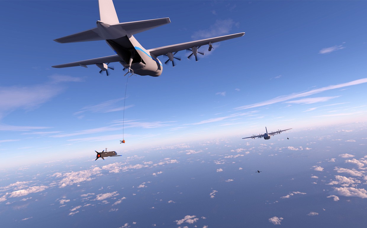 DARPA GREMLIN developed Flying Aircraft Carrier with launch and retrieval system of swarming UAVs to defeat A2/AD environments