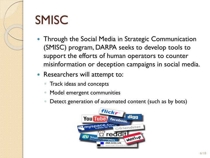 DARPA’s SMISC program to identify misinformation or deception campaigns on Social Media and conduct its own propaganda campaigns