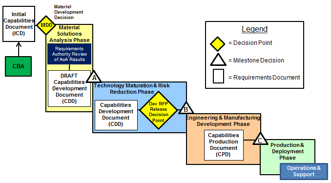 3. Approval of the Capability Development Document (CDD): validate the Key Performance Parameters (KPP) and their associated threshold and objective values; assesses the risks in meeting those KPPs in terms of cost, schedule and technological maturity; and assesses the affordability of the system as compared to the operational capability being delivered.